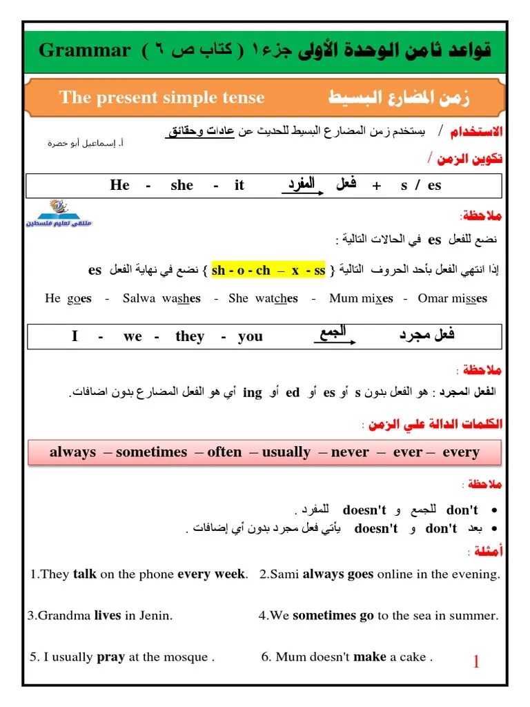 Unit 1 Grammar Grade 8